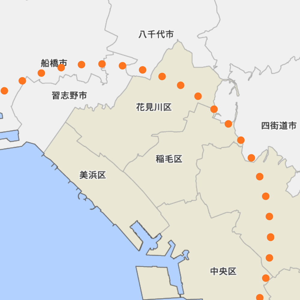 訪問診療の範囲は、クリニック(千葉市美浜区高洲)より16km圏内と定めがありますので、花見川区・美浜区・稲毛区・習志野市、中央区が主となります。若葉区・八千代市・船橋市に関しては、距離と道路交通事情の問題がありますので、要相談ということでお願いいたします。